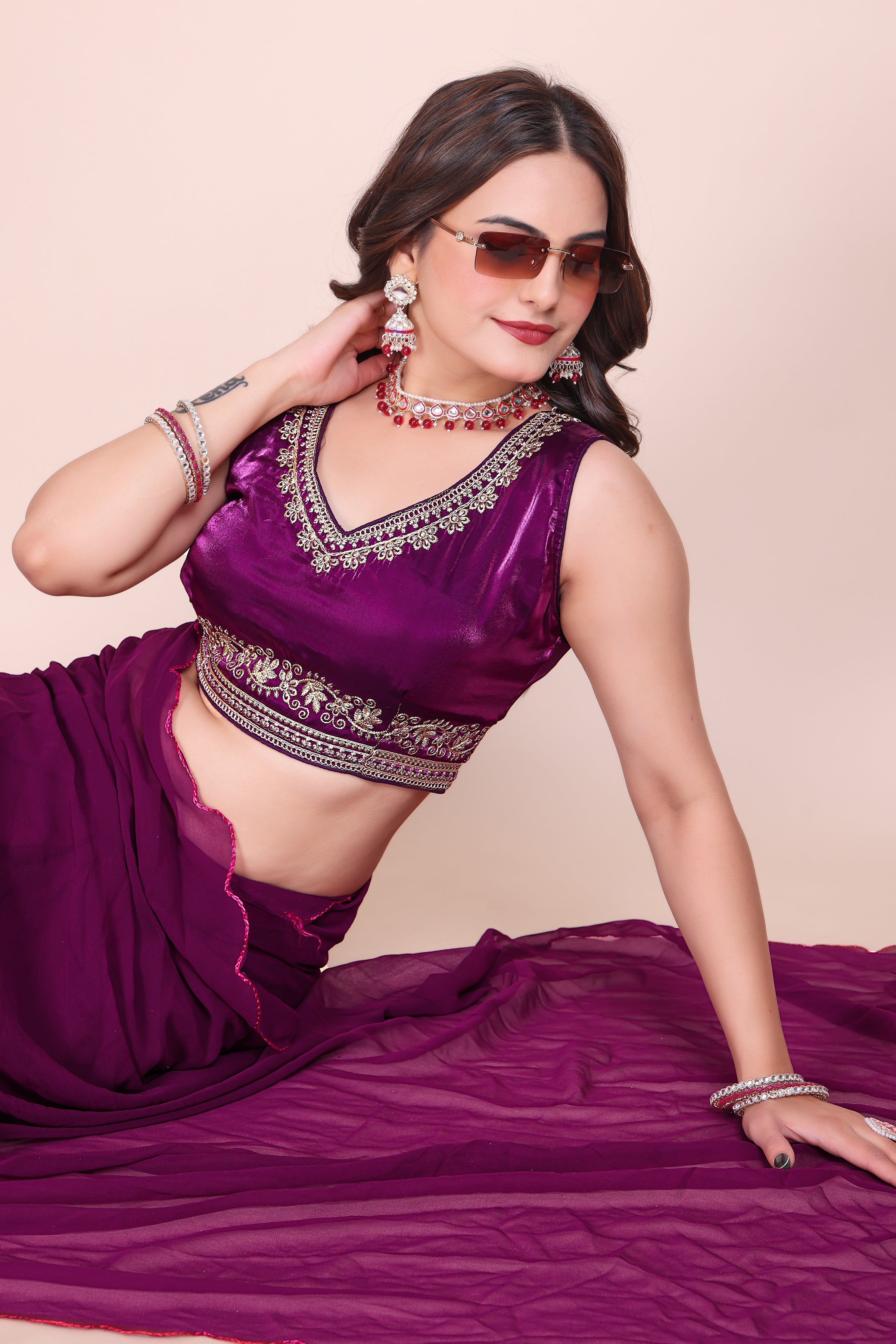 MK WOMEN'S Latest Ethnic Wear Chush fandy Saree With Stiched Blouse Trendy colour Pack Of 1.