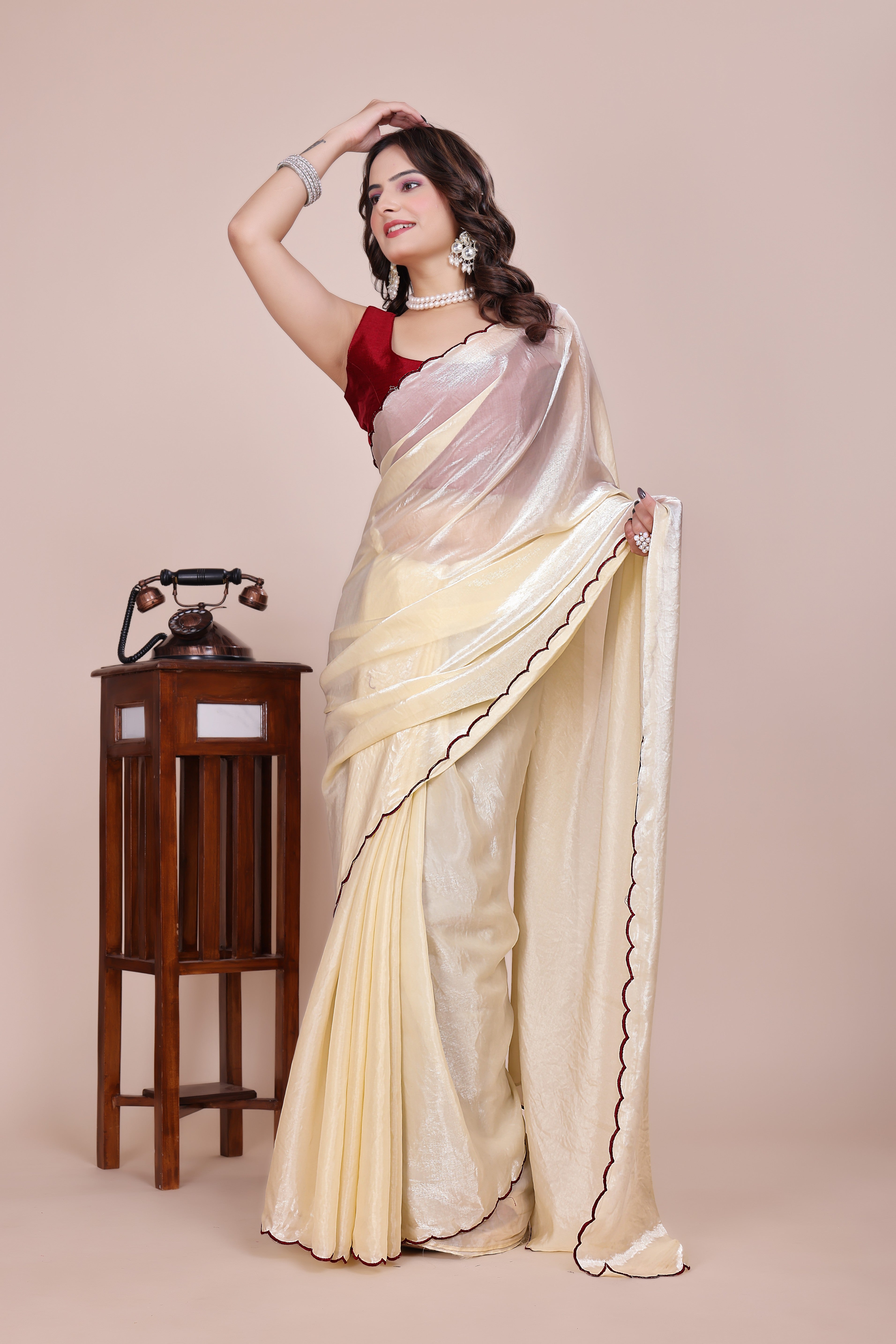 MK WOMEN'S Latest Ethnic wear Jimmychoo Saree With Lace Border Saree With Blouse Piece Pack Of 1.