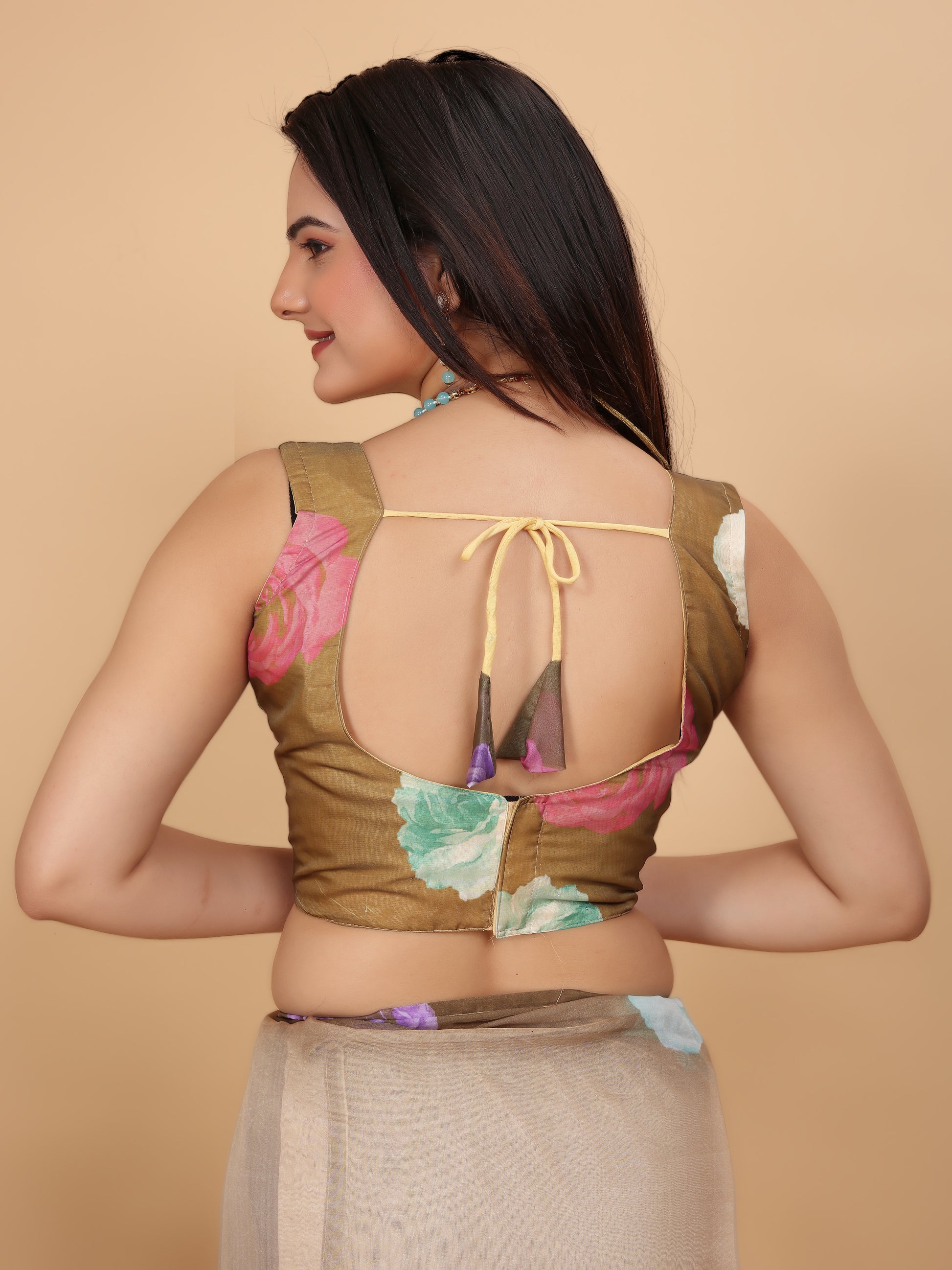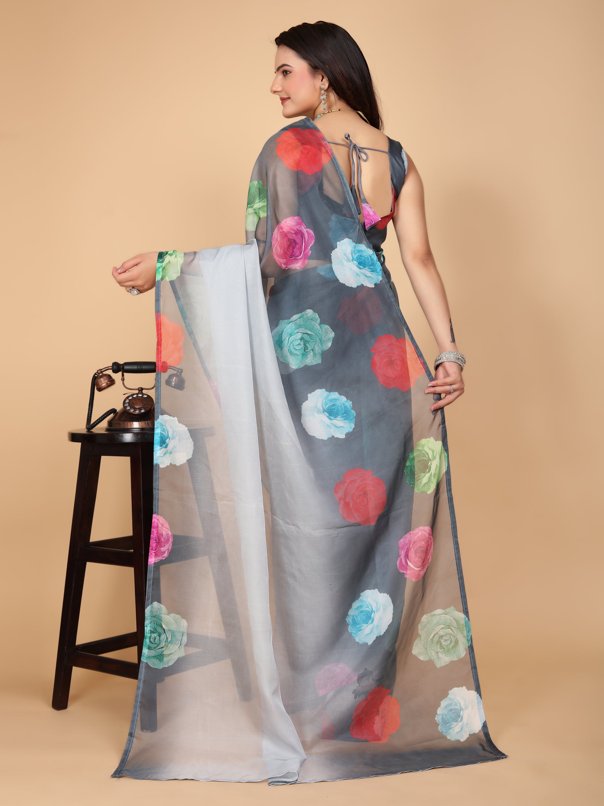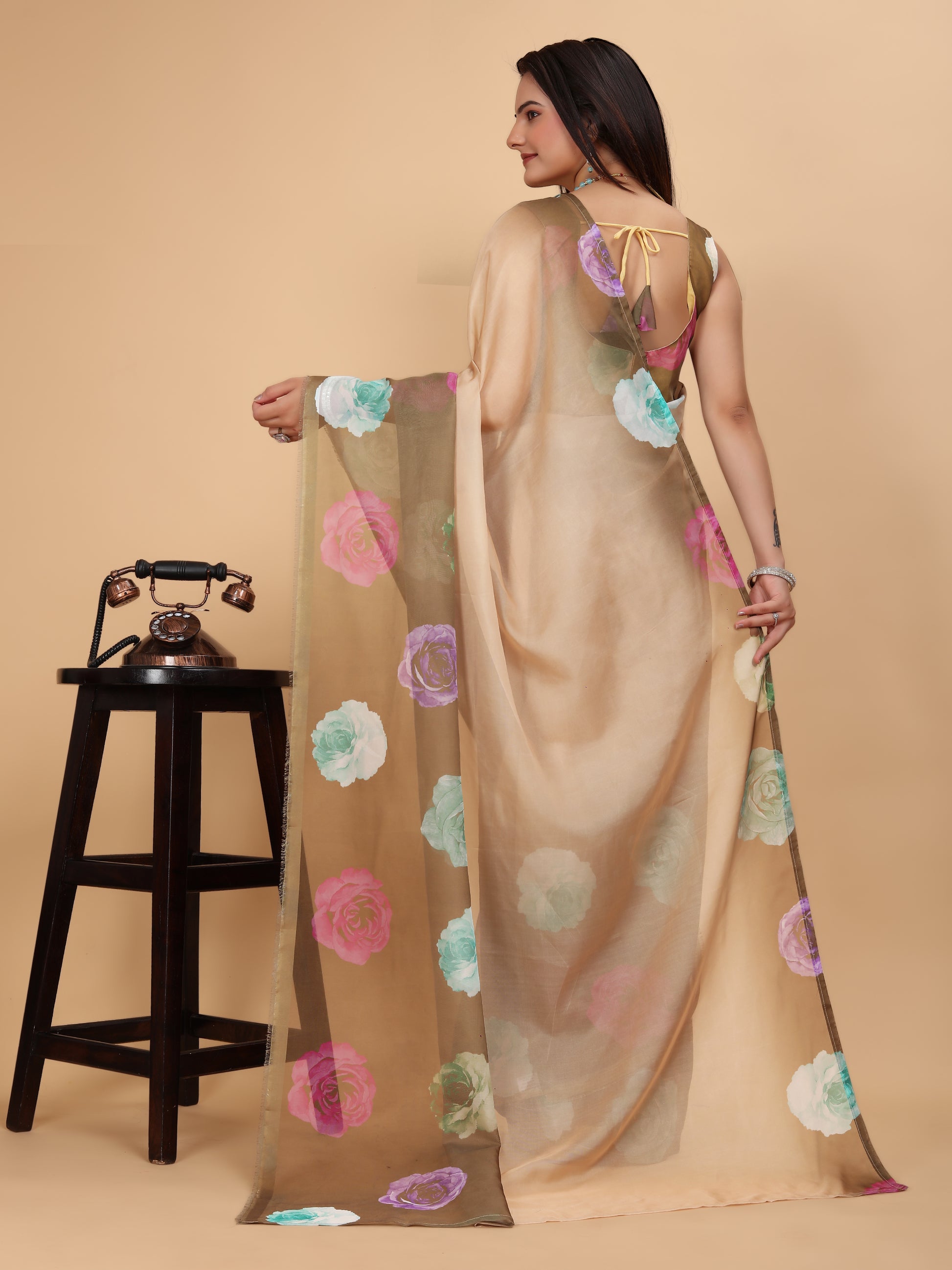 MK FASHION Women's Saree Soft Organza Silk Saree (5.5 m) With All Over Digital Print With Blouse Piece (85cm) For Partywear Pack Of 1.