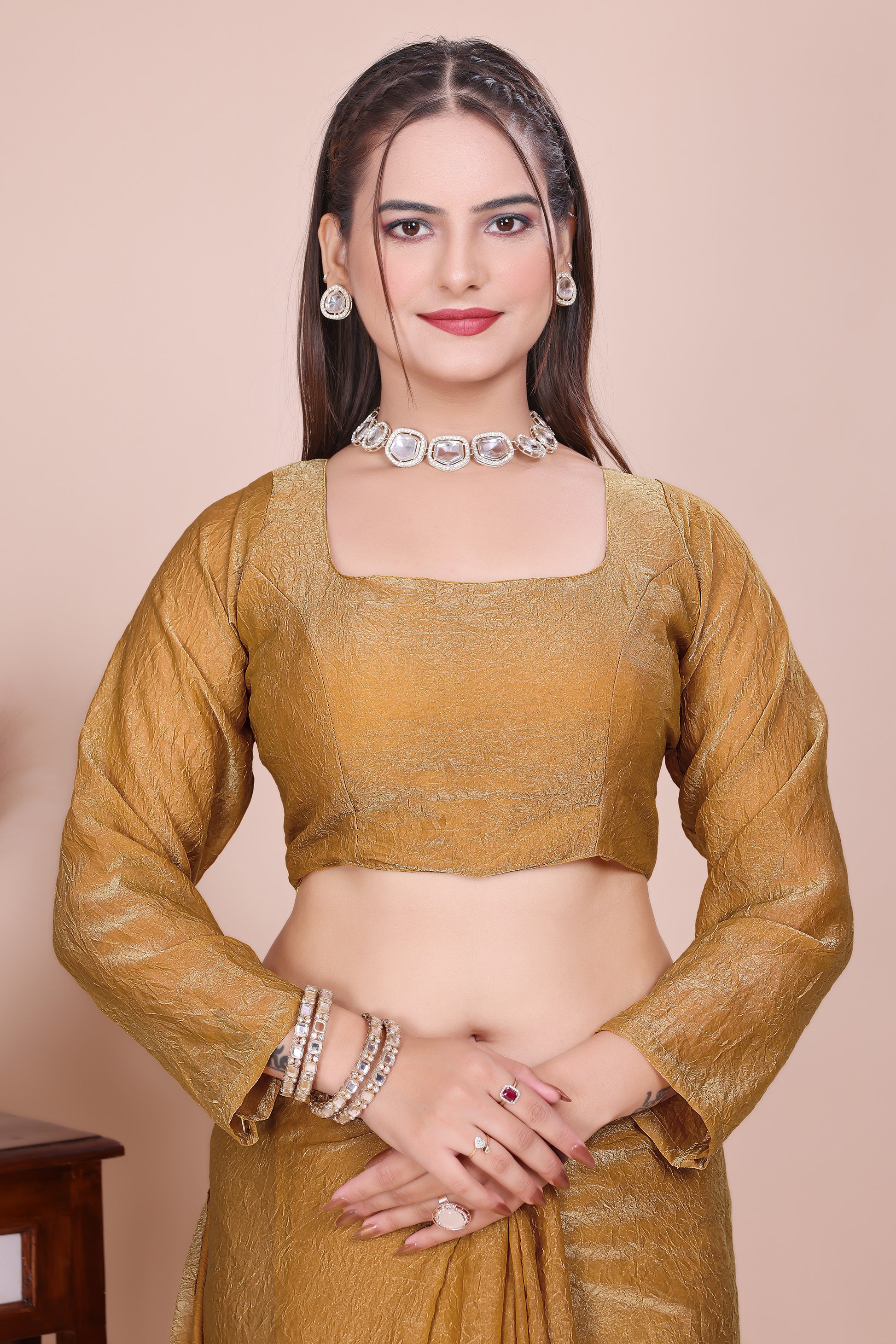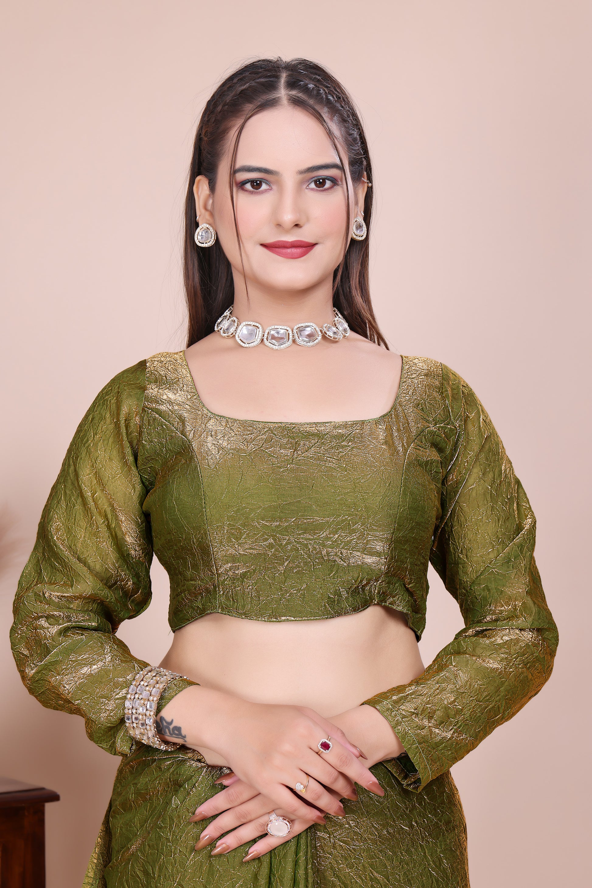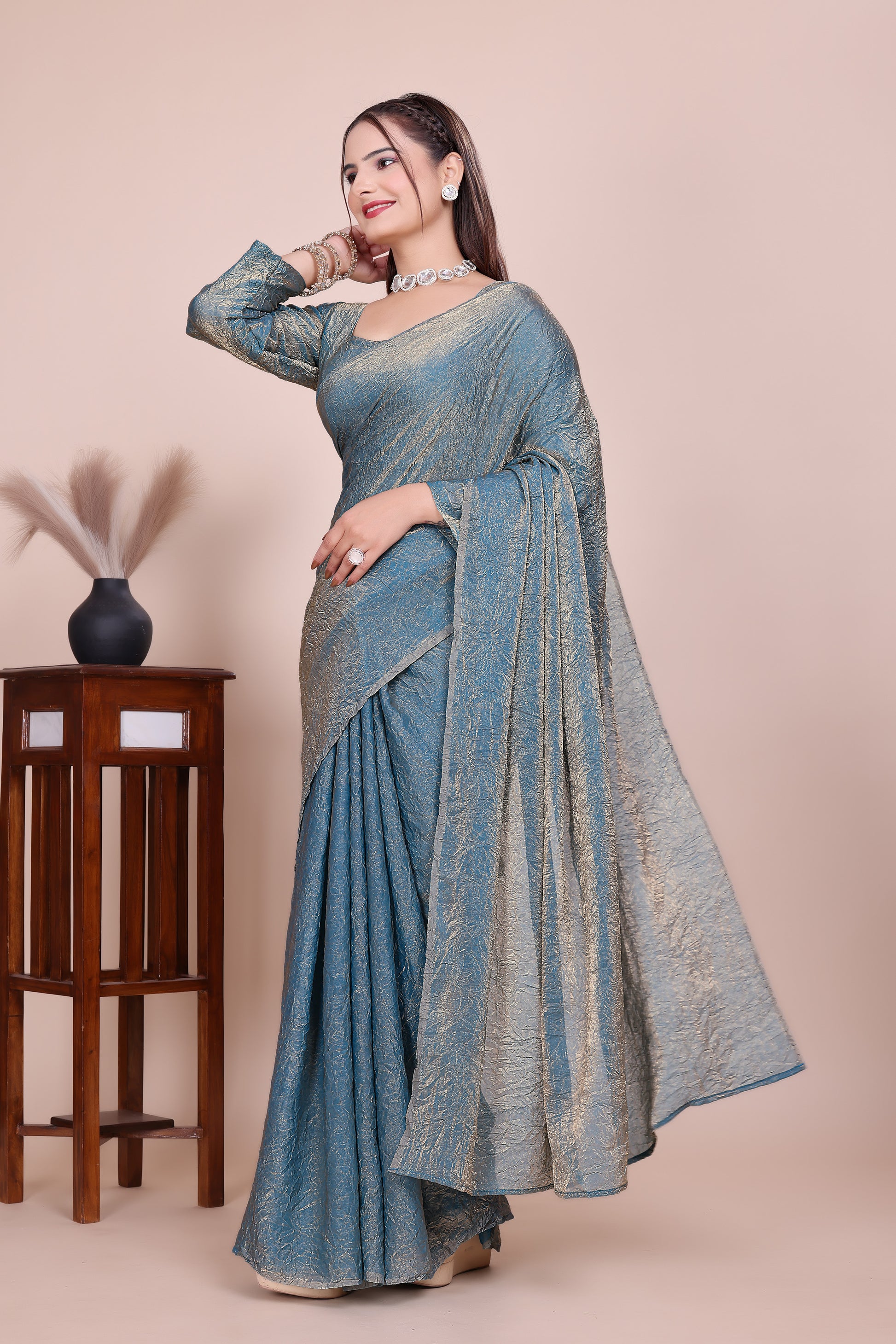 MK WOMEN'S Lastest Ethnic wear Fandy crush saree with Stiched blouse ,trendy multicolour colors,and best quality fabric is what we presents to you.our designer saree color will surely make