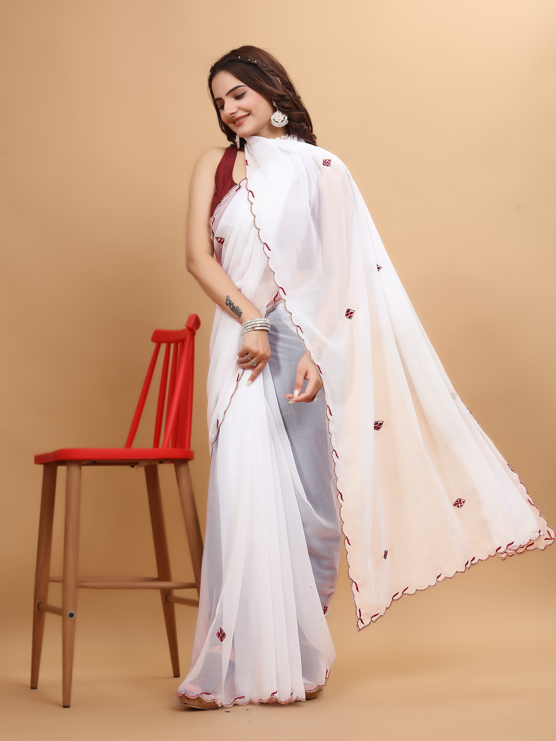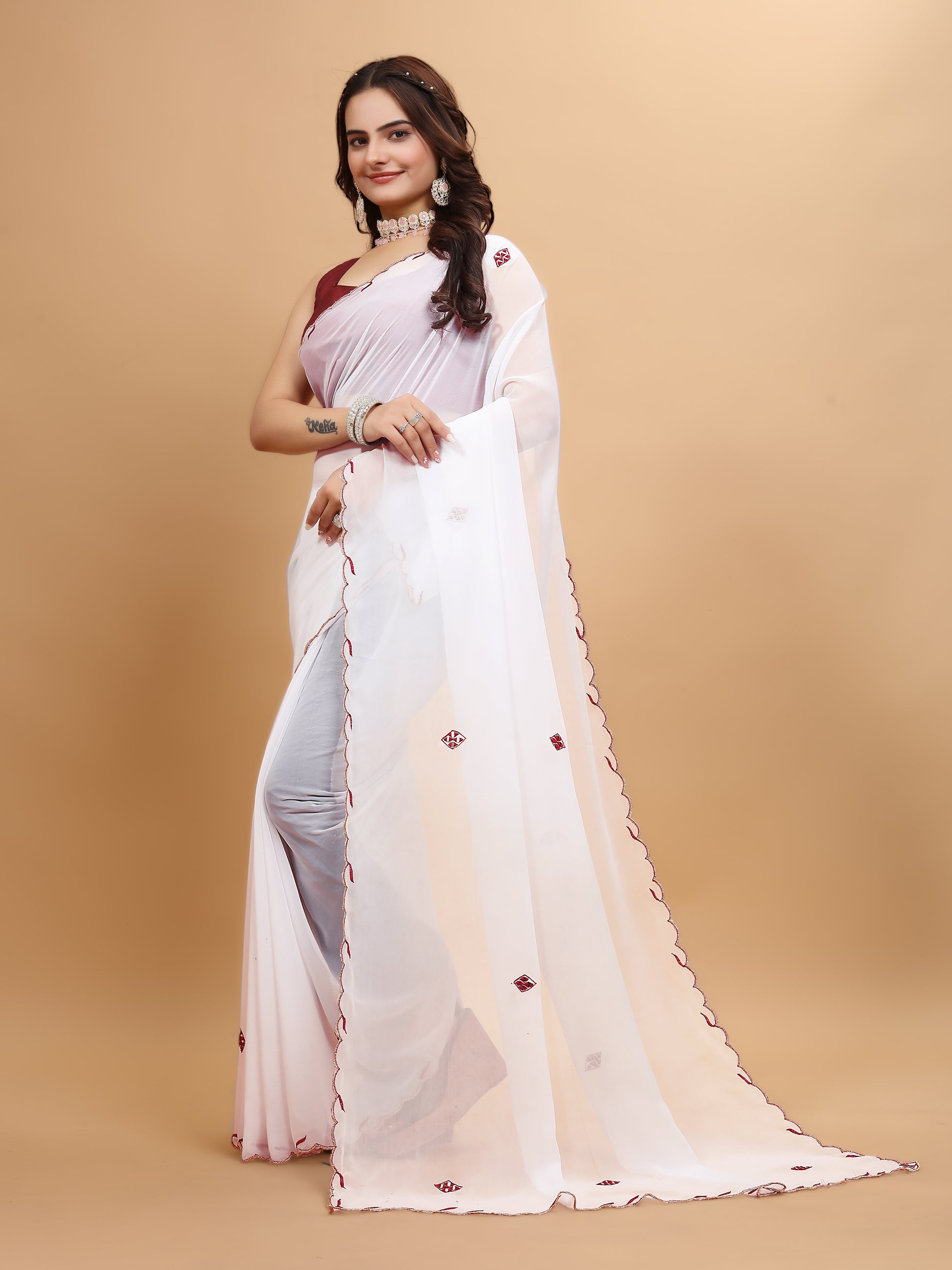 MK WOMEN'S Lastest Ethnic wear Gorgette saree with Handwork border saree with blouse piece,trendy multicolour colors,and best quality fabric is what we presents to you.our designer saree color will surely make