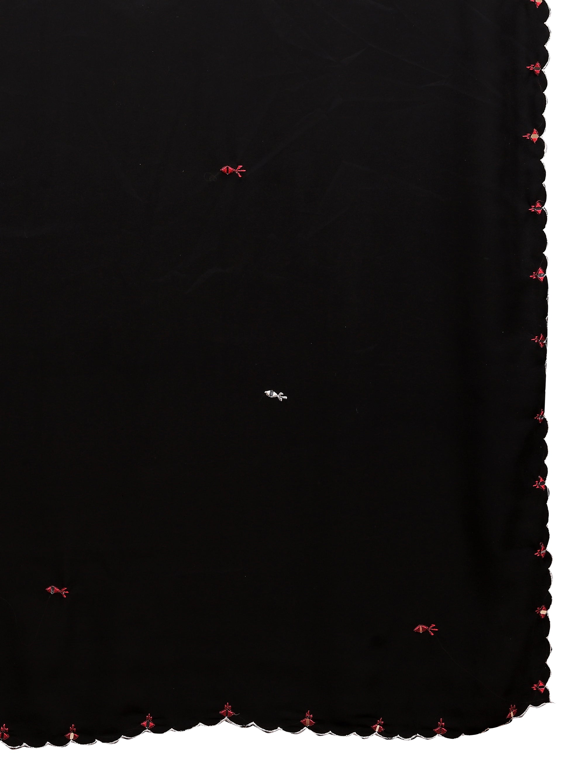 MK WOMEN'S Latest Ethnic Wear Georgette Saree Solid Pattern With Handwork Border Saree With Blouse Piece In Black Color Pack Of 1.